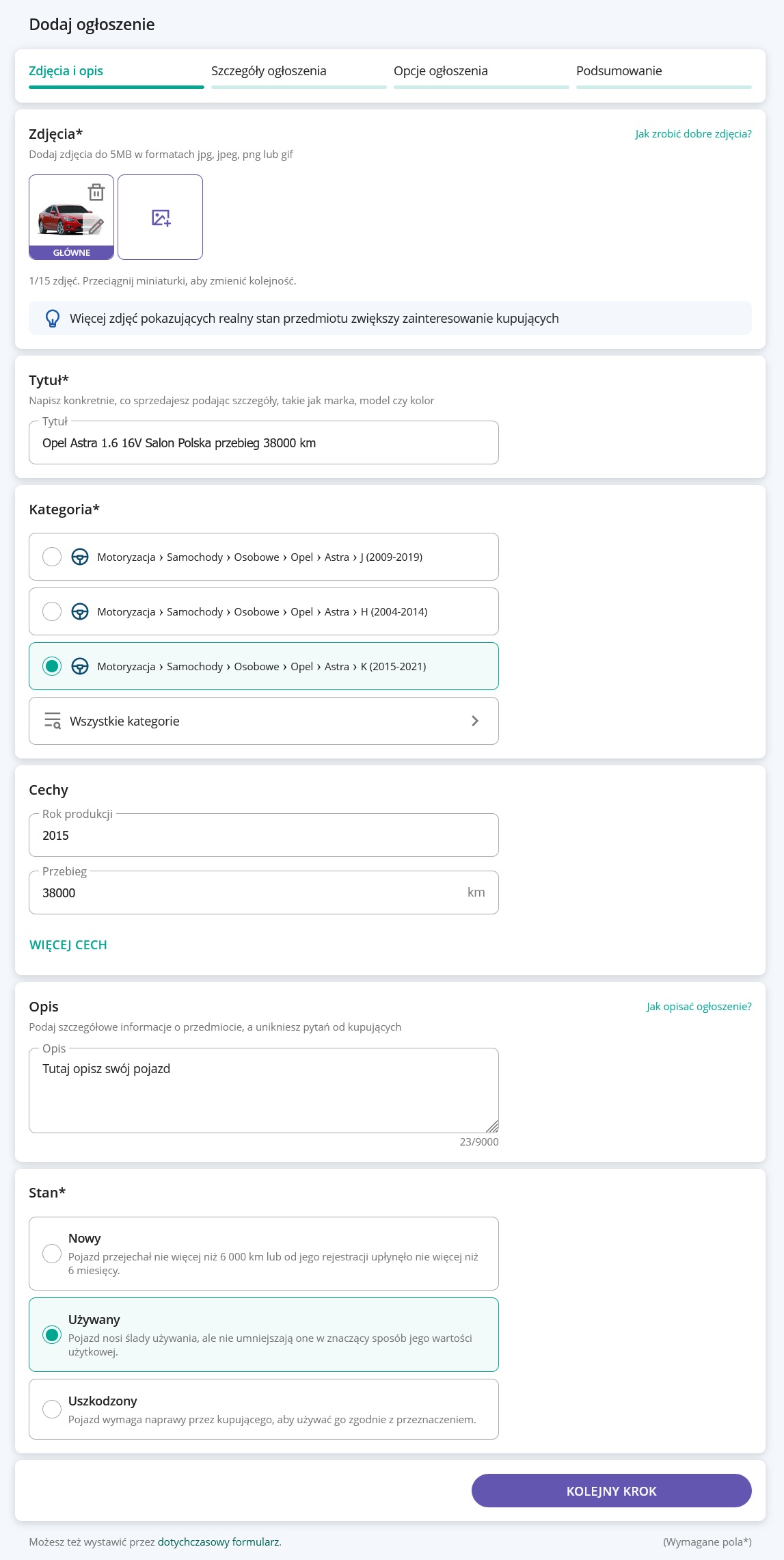 Swój pojazd sprzedasz szybciej, jeśli kupujący znajdzie w opisie wszystkie ważne informacje.