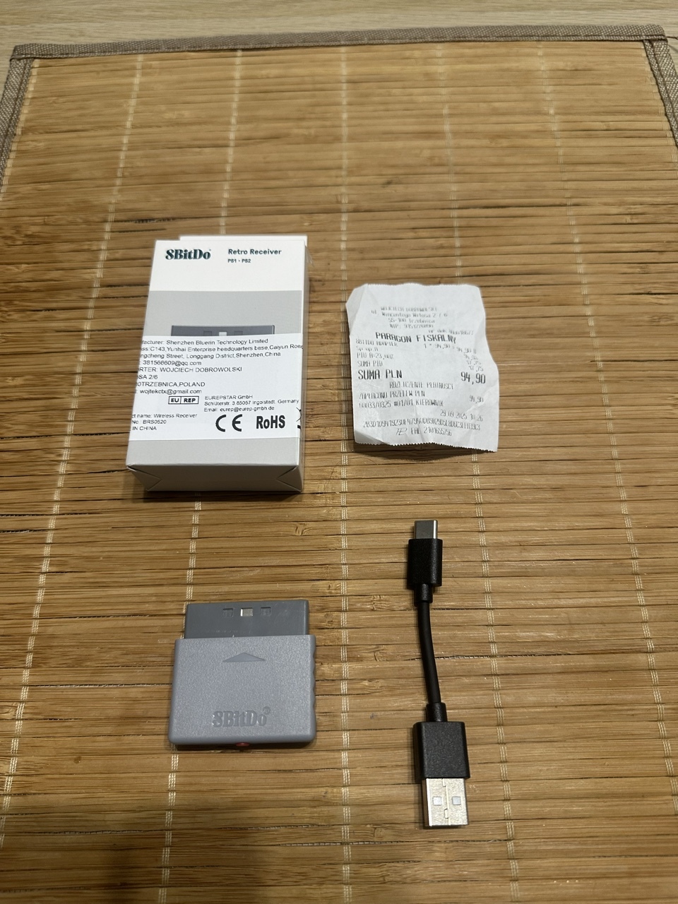 Przedmiotem ogłoszenia jest tylko adapter 8Bitdo Retro Receiver wraz z kablem USB-C. Inne akcesoria / pady widoczne na zdjęciach pochodzą z innych ogłoszeń i są pokazane wyłącznie w celu demonstracji działania.