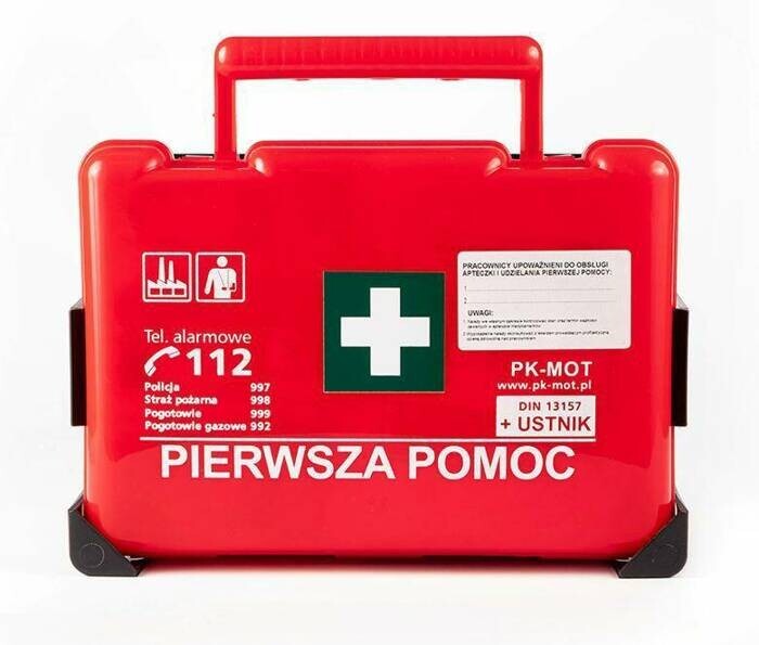 Ta apteczka jest odpowiednio wyposażona, aby zapewnić pierwszą pomoc w wypadkach w miejscu pracy.