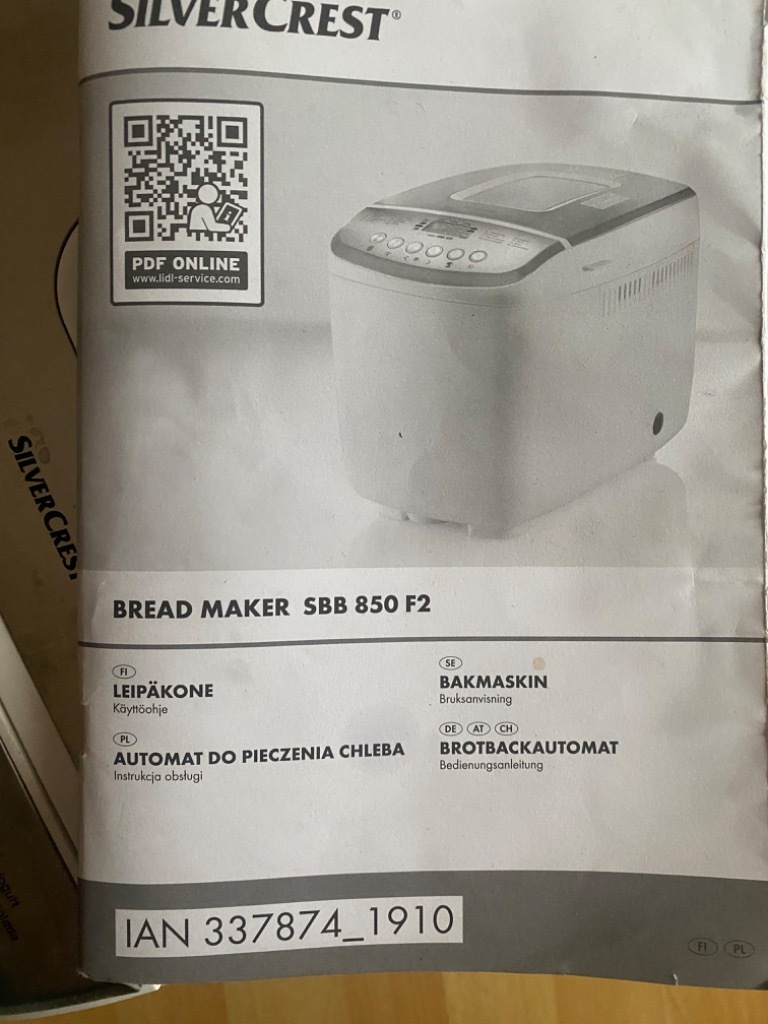 | Model | Bread maker SBB 850 F2 |