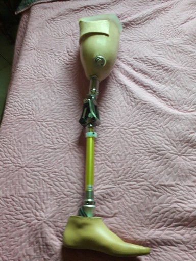 Wykonana w b.dobrej firmie ottobock. Lej protezy jest dwuwarstwowy, warstwa wewnętrzna to materiał gumopodobny, zwiększający komfort chodzenia. GRATIS dodaje drugi lej i specjalistyczny rękaw do ubierania protezy.