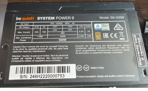 | Moc zasilacza | 500 W |