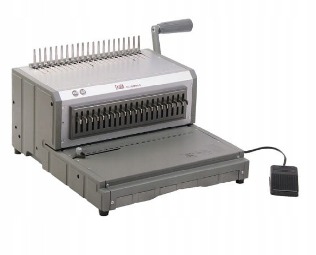 Bindownica Opus el-Jumbo B to najnowsza w ofercie bindownica elektryczna przeznaczona do oprawiania dokumentów grzbietem plastikowym. Polecana do dużych biur i punktów usługowych. Dzięki solidnej, metalowej konstrukcji urządzenie jest bardzo wytrzymałe ! Lekko działający mechanizm rozciągania grzbietów oraz przycisk nożny uruchamiający urządzenie sprawiają, że El-Jumbo B jest bardzo wygodna w obsłudze. Wyposażona jest w regulacje marginesu, ogranicznik formatu, wyłączane noże oraz duży pojemnik na ścinki. Ponadto posiada czytelny przymiar grubości grzbietów. Jest to następczyni cieszącej się dużym uznaniem wśród najbardziej wymagających klientów bindownicy EL-JUMBO.