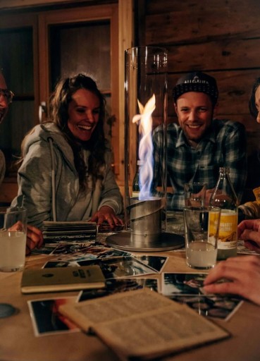Hoefats SPIN 90 – nowoczesny lampion stołowy z efektem wirujących płomieni
