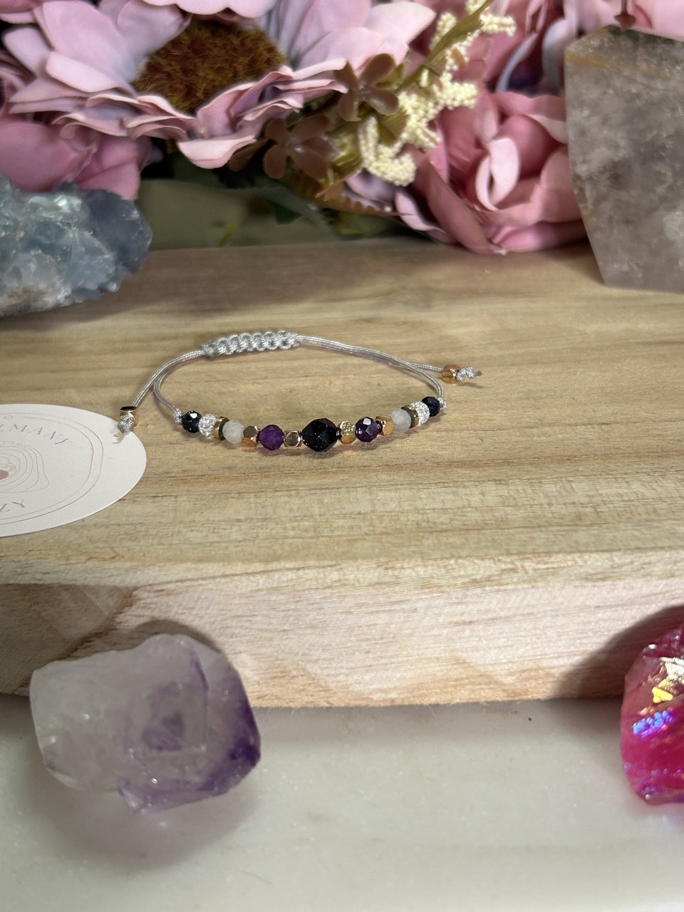 | Materiał | kamień, pozłacany, sznurek |