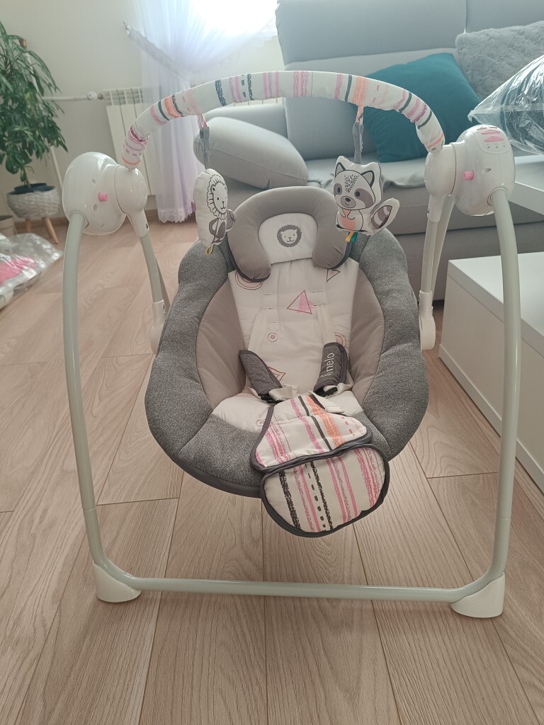 | Cechy dodatkowe | pałąk z zabawkami, regulator czasu pracy, zasilanie sieciowe, zasilanie bateriami, zdejmowany pokrowiec, automatyczne bujanie |