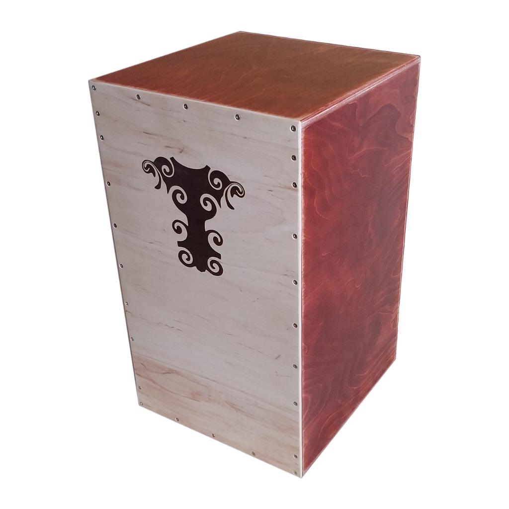 Witam, oferuję na sprzedaż cajon, samodzielnie wykonany, w bardzo dobrym stanie. Instrument wykonany jest ze sklejki brzozowo – olchowej grubość 9 mm (boki, spód, góra) , tył grubość 6 mm, przód ze sklejki brzozowej 3 mm. Całość wykończona natryskowo lakierem akrylowym do drewna, z dodatkowym wybarwieniem elementów bocznych, tylnych, góry i dołu, tak jak to widać na zdjęciach. Przód zdobiony grawerem laserowym.