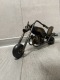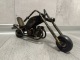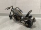 Na sprzedaż stylowy model motocykla typu chopper, wykonany z metalu z charakterystycznym industrialnym wykończeniem.