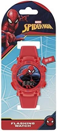 Disney Marvel Spiderman z czerwonym silikonowym paskiem i tarczą Spiderman.Ten stylowy zegarek ma czerwoną, wytrzymałą plastikową obudowę, która jest trwała. Tarcza Spidermana dodaje zabawy zapewnia łatwe i dokładne odmierzanie czasu.Wystarczy jedno naciśnięcie przycisku, a koperta zegarka rozświetli się i zacznie migać, dodając dodatkowy element ekscytacji do Twojego dziecka.