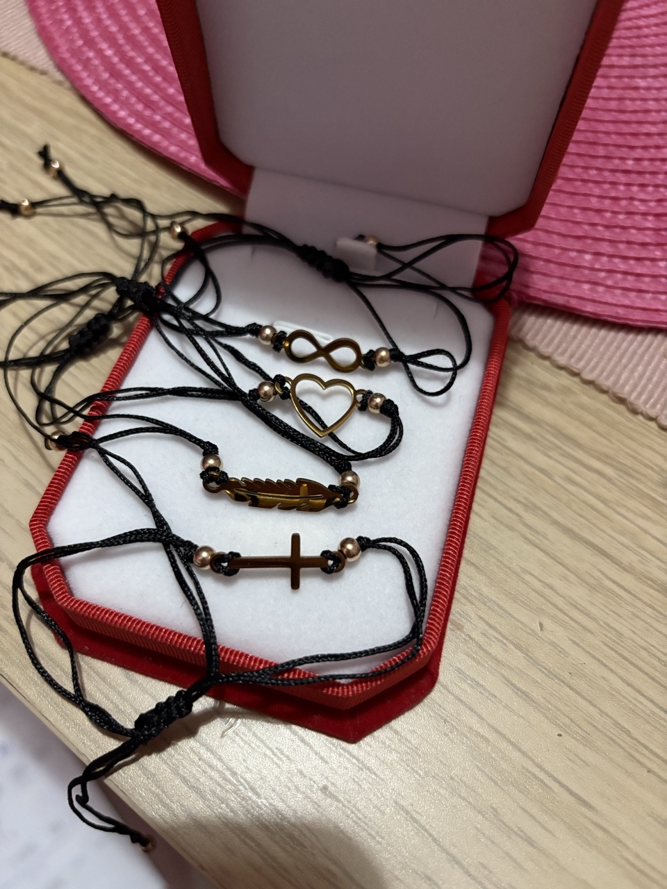 | Materiał | pozłacany, stal, sznurek |