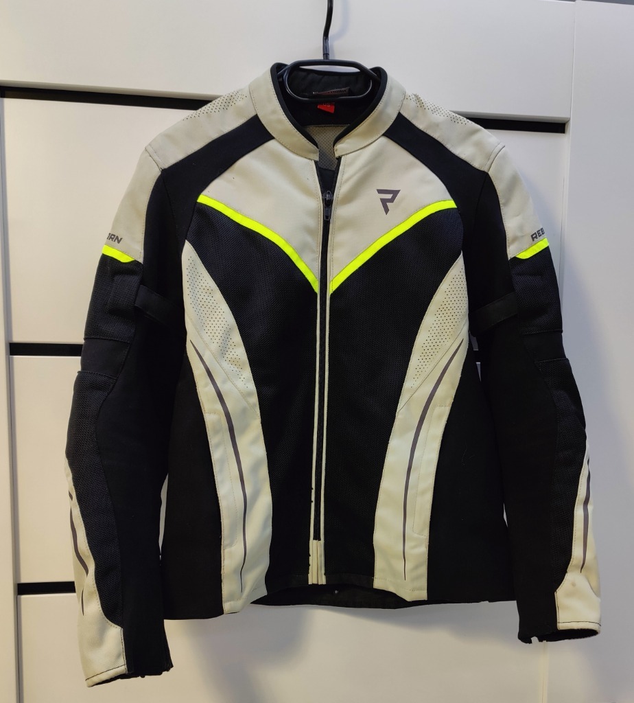 Kurtka w rozmiarze S oraz spodnie w rozmiarze M, świetnie wentylowane, posiadają także membranę, ochraniacze w standardowych miejscach.