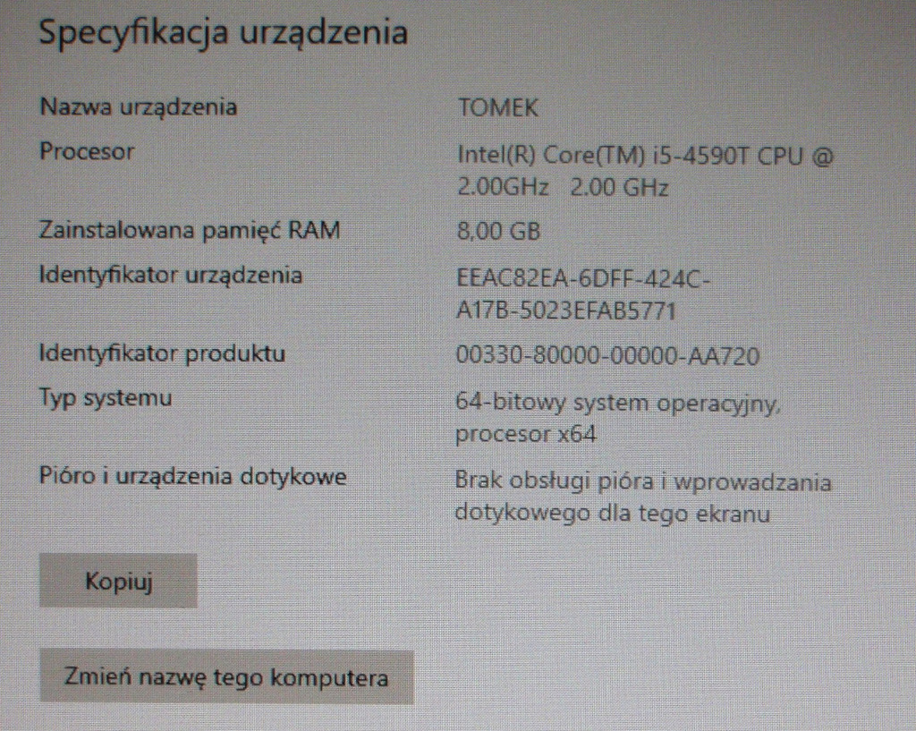 | Wielkość pamięci RAM | 8 GB |