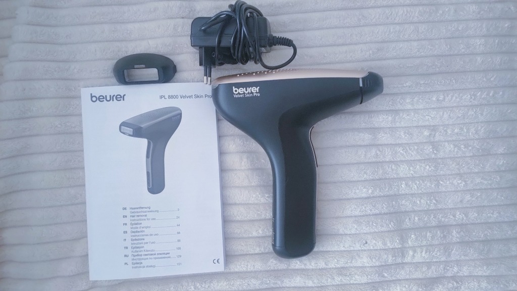 | Funkcje | czujnik kontaktu ze skórą, golenie, regulacja prędkości, tryb seryjny lampy błyskowej, oświetlenie miejsca depilacji |