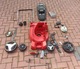Części do kosiarki GE-CM 43 Li po demontażu z powodu uszkodzonego silnika.