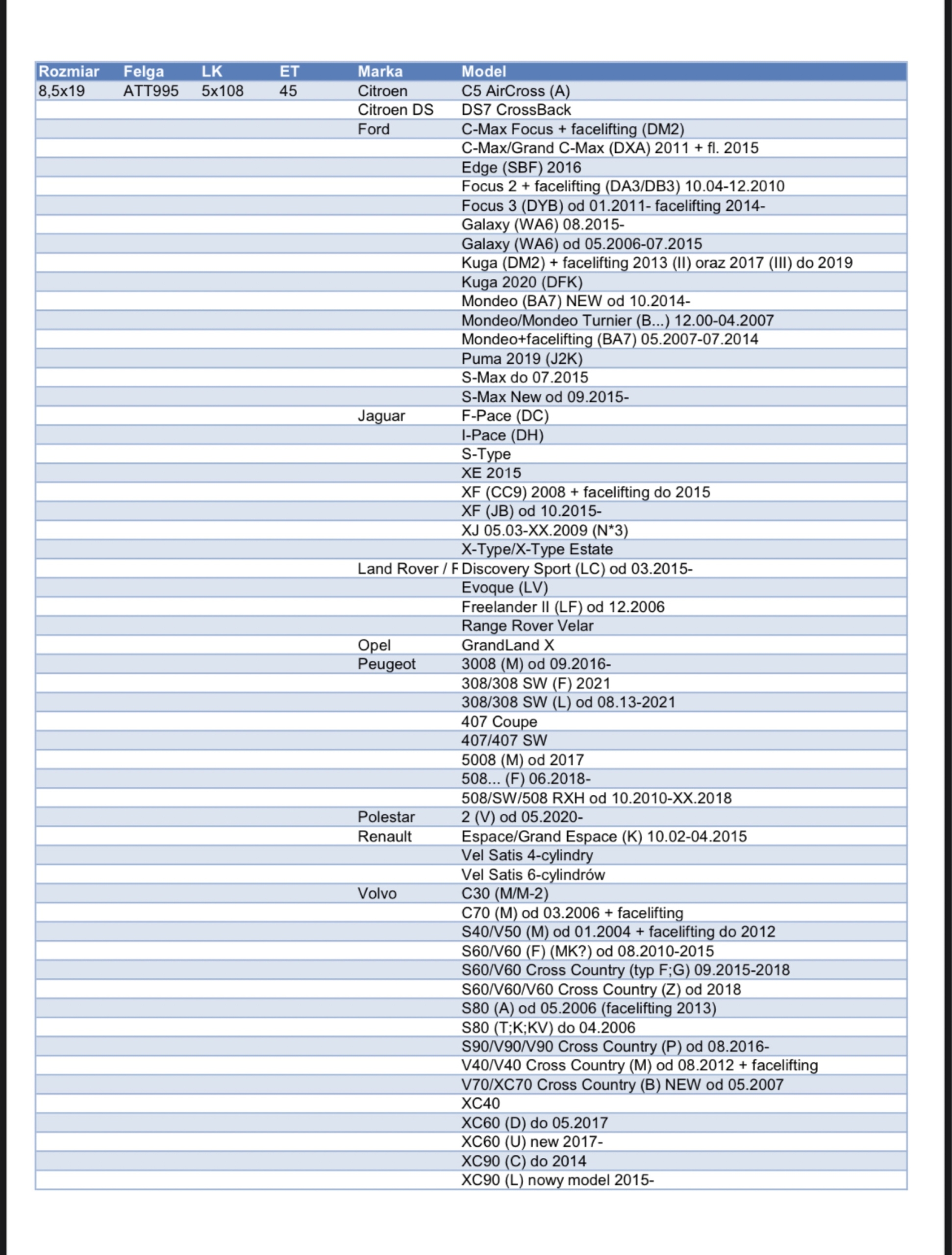 | Liczba felg w ofercie | 4 szt. |
