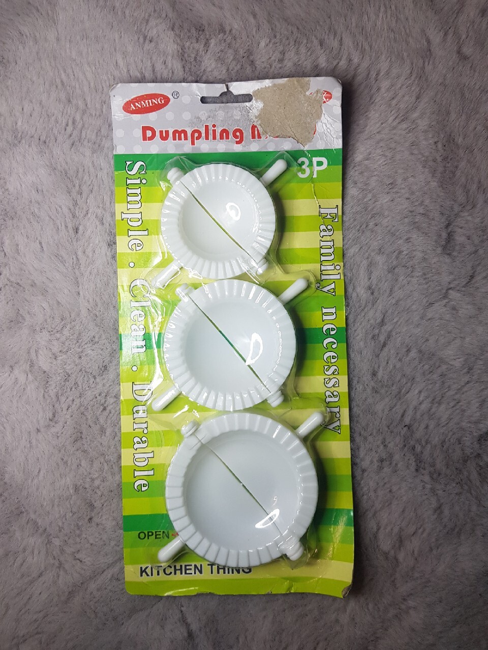 Foremki do robienia pierogów marki Anming, sprzedawane w zestawie po 3 sztuki, które służą do łatwego i szybkiego formowania ciasta z nadzieniem.