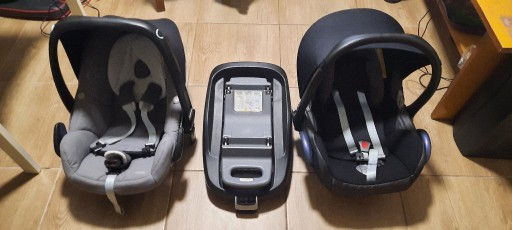 Podstawka i dwa foteliki w bardzo dobrym stanie dla dziecka do pierwszego roku.