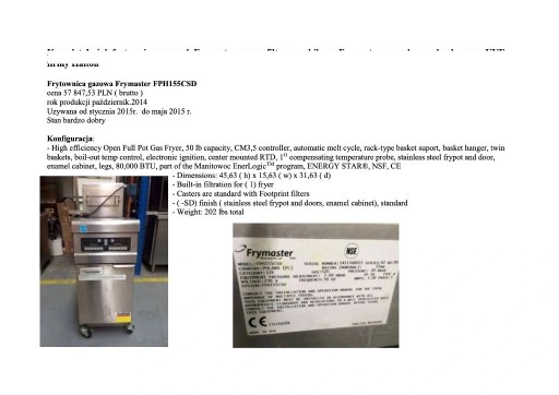 | Model | Frymaster FPH 155 CSD |