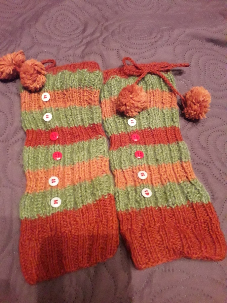 Urocze ręcznie robione ocieplacze, możliwość siągnięcia troczkami z pomponami. Stan idealny. Dł. 26cm, szer. góra 11cm, szer.dół 10cm. sugerowany wiek 3-5lat. Zapraszam