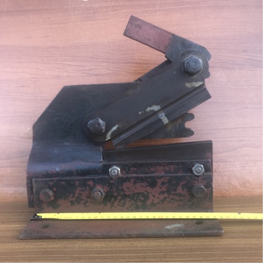 Nożyce maja bardzo masywną i mocna konstrukcje, ważą ponad 14 kg , dlugosc i wysokość nożyc około 30 cm , podstawa o szerokości 14 cm do przykrecenia na stole , blachę 1,8 mm o dlugosci 30 cm , taką akurat miałem pod ręką , tną bez problemu , cały długi pasek uciąłem bez żadnej rączki - przedłużki , która zaginęła, ale można ją zrobić nawet z rury. stalowej. Bednarke o grubości 3 mm tez tną , noże o długości około 175 mm nie są wyszczerbione.