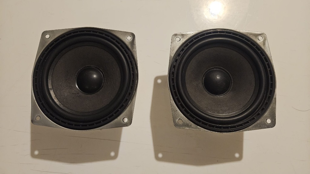 Głośniki używane, w dobrym stanie. Membrany oraz zawieszenia w porządku, bez pęknięć i przetarć. Kosze noszą normalne ślady użytkowania i wieku, co nie wpływa na działanie. Idealne do dalszego wykorzystania.