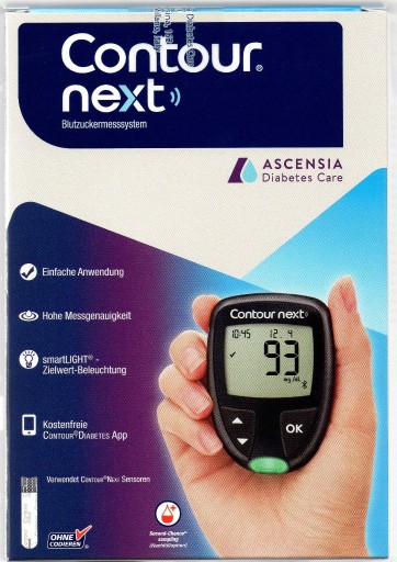 Dowiedz się więcej na temat Twojej cukrzycy. Glukometry i paski do tego glukometru są dostępne w naszej ofercie. Sposób użycia CONTOUR NEXT ONE to nowoczesny system monitorowania stężenia glukozy we krwi (BGMS ) System ten obejmuje prosty w obsłudze, inteligentny glukometr z funkcją łączności bezprzewodowej, który komunikuje się ze smartfonem za pośrednictwem łącza Bluetooth. Glukometr CONTOUR NEXT ONE łączy się z mobilną aplikacją CONTOUR Diabetes, która zbiera, zapisuje i analizuje wyniki pomiarów stężenia glukozy we krwi otrzymane z glukometru. Aplikacja ta łączy wyniki pomiarów z innymi danymi zapisanymi przez pacjenta chorującego na cukrzycę, zapewniając w ten sposób dokładniejsze informacje na temat jego stanu, co z kolei ułatwia podejmowanie właściwych decyzji dotyczących leczenia. Glukometr Contour NEXT One: Funkcja smartLIGHT Podaje natychmiastową informację zwrotną o wynikach pomiaru cukru. Zielony = w granicach wartości docelowych Żółty = powyżej wartości docelowych Czerwony = poniżej wartości docelowych Pomiar drugiej szansy Informuje o konieczności ponownego umieszczenia próbki krwi na tym samym pasku – w ciągu 60 sekund – jeżeli pierwsza była niewystarczająca. Pomaga uniknąć kolejnego ukłucia i marnowania pasków. Dokładność przewyższająca obowiązujące normy ISO 15197 Aplikacja CONTOUR Diabetes: Przeglądaj wyniki z archiwum Za pomocą Bluetooth połącz aplikację z glukometrem CONTOURNEXT i pobierz wyniki pomiarów cukru. Dodawaj zdarzenia do swoich wyników Możesz zapisywać różne zdarzenia – takie jak dieta, aktywność ruchowa, leki – a także dodawać zdjęcia posiłków i notatki tekstowe lub głosowe. Pomoże Ci to lepiej zrozumieć leczenie. Dzięki temu zobaczysz, jak codzienne czynności wpływają na Twoje leczenie. Udostępniaj raporty lekarzowi Aplikacja CONTOUR umożliwia udostępnienie wyników lekarzowi – z wyprzedzeniem lub w dniu wizyty. Pacjent i lekarz dysponują dokładniejszymi informacjami, więc w trakcie wizyty mogą skupić się na najważniejszych kwestiach. Dane techniczne Próbka badana: Krew pełna włośniczkowa i żylna Wynik pomiaru: W odniesieniu do stężenia glukozy w osoczu/surowicy krwi Objętość próbki: 0,6 l Zakres pomiarowy: 10 mg/dl–600 mg/dl glukozy we krwi. Czas odliczania: 5 sekund Pamięć: Przechowuje 800 ostatnich wyników badania. Rodzaj baterii: Dwie 3-woltowe baterie litowe (płaskie) CR2032 lub DL2032. Żywotność baterii: Około 1000 testów (1 rok przeciętnego użytkowania, 3 badania dziennie). Zakres temperatury pracy glukometru: 5-45 Zakres wilgotności pracy glukometru: 10%–93% wilgotności względnej Wymiary: 97 mm (dł.) x 28 mm (szer.) x 14,9 mm (wys.) Waga: 36 gramów Okres trwałości glukometru: 5 lat Głośność sygnału dźwiękowego: 50 dB(A)–85 dB(A) w odległości 10 cm Zestaw zawiera następujące elementy : Glukometr do pomiaru stężenia glukozy we krwi CONTOUR NEXT ONE 10 pasków testowych CONTOUR NEXT Nakłuwacz Microlet 2 Końcówka do alternatywnego miejsca nakłucia 10 lancetów Instrukcja obsługi (język niemiecki, instrukcja w języku angielskim: https://www.contournext.com/siteassets/products/web85688006_cntrnxtone_ug_r01-17.pdf) Skrócona instrukcja obsługi (język niemiecki, instrukcja w języku angielskim: https://www.contournext.com/siteassets/products/web85635484_cntrnxtone_qrg_r12-16.pdf Etui . Sposób użycia Pobrać aplikację Contour Diabetes App1 na swój smartfon ze sklepu Google Play lub App StoreSM. Zeskanować kod znajdujący się w instrukcji obsługi i postępować zgodnie z instrukcjami wyświetlonymi na ekranie. Możliwe jest także używanie glukometru bez integracji ze smartfonem, bez możliwości skorzystania z usług dodatkowych. Nacisnąć i przytrzymać przycisk OK przez 2 sekundy, aż miernik się włączy. Upewnić się, że sekwencja numeryczna 8,8,8 jest wyświetlana w całości, a podświetlenie wartości docelowej jest widoczne w kolorze białym. Ustawić zakres docelowy, datę i godzinę, a także dodatkowe parametry wymagane przez urządzenie. Umyć ręce wodą z mydłem i dobrze je osuszyć przed i po wykonaniu testu. Zdjąć nasadkę uszczelniającą z lancetu. Przekręcić nasadkę ochronną o ćwierć obrotu, ale nie zdejmować. Włożyć lancet do oporu i ponownie przekręcić nasadkę. Zdjąć osłonkę. Przekręcić pierścień regulacyjny zgodnie z wybraną głębokością wkłucia. Wyjąć pasek testowy z puszki. Trzymając czujnik szarym kwadratowym końcem w kierunku glukometru, włożyć go do urządzenia. Glukometr wyda sygnał dźwiękowy. Mocno dociśnij lancet do opuszka palca i naciśnij przycisk zwalniający. Przeciągnąć palcem od dłoni w kierunku miejsca wkłucia, aby utworzyć tam kroplę krwi. Umieścić otwór pomiarowy czujnika na kropli krwi. Przytrzymać do usłyszenia sygnał dźwiękowego. Więcej na stronie: https://www.contournext.com/products/contour-next-one/ UWAGA: języki aplikacji, urządzenia - niemiecki lub angielski Film użycia https://www.diabetes.ascensia.de/link/e90d9363d624428da50cb2cc05867853.aspx