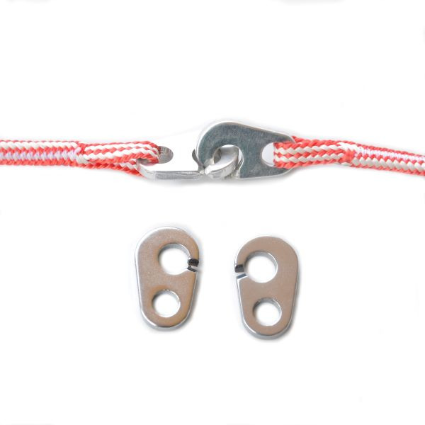 Haczyki do podpięcia speed'a w uprzęży lub do innych szybkich i mocnych połączeń. • wymiary: 25 x 15 mm • materiał: aluminium grubość 3mm • ciężar 2g/szt