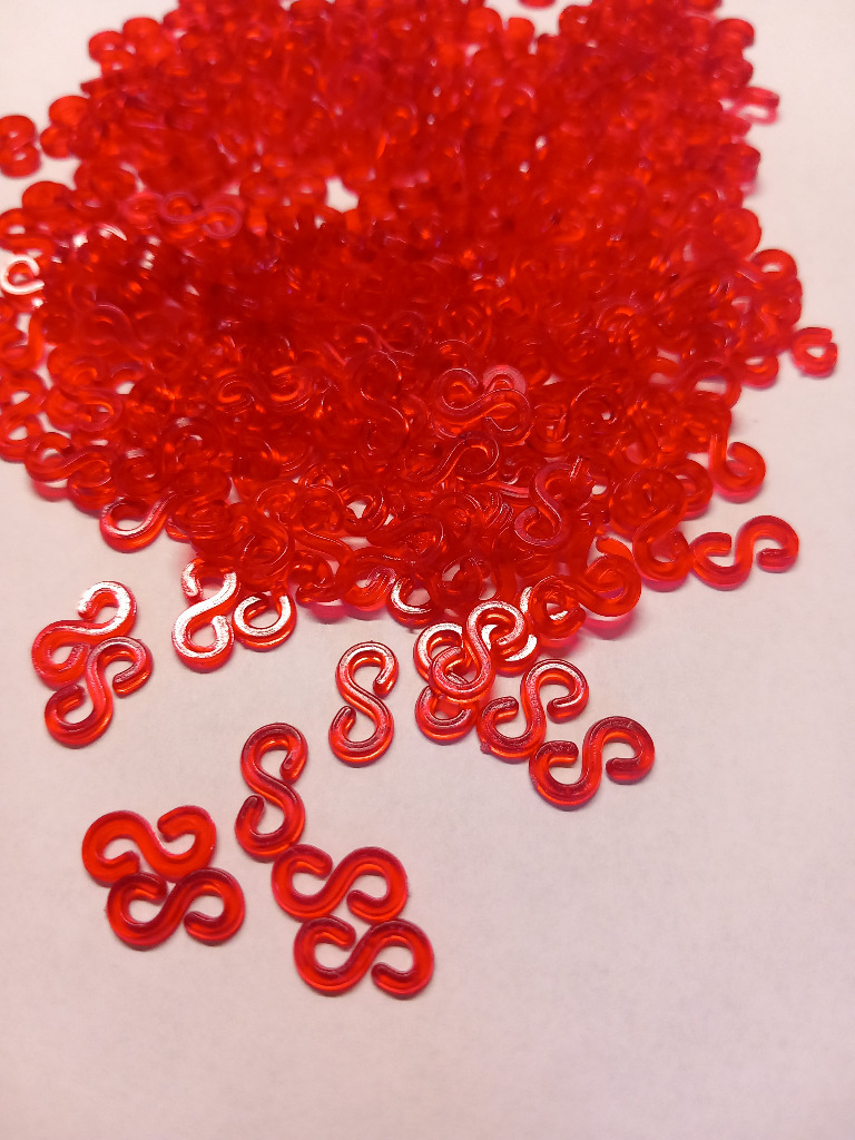 Zapinki – haczyki w kształcie „S” do bransoletek z gumek 20 szt czerwone.