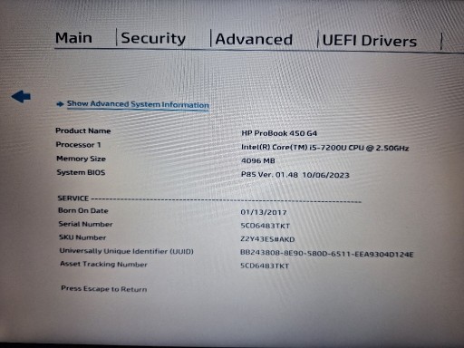 | Model | :ProBook 450 G4 |
