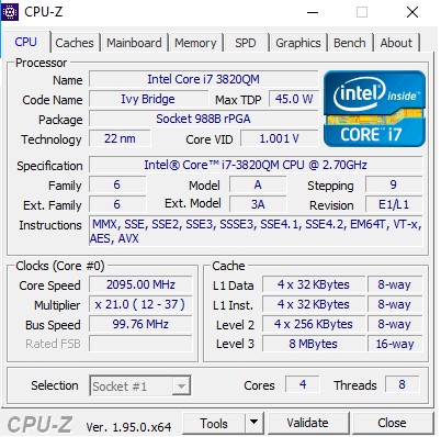 | Model | i7-3820qm |