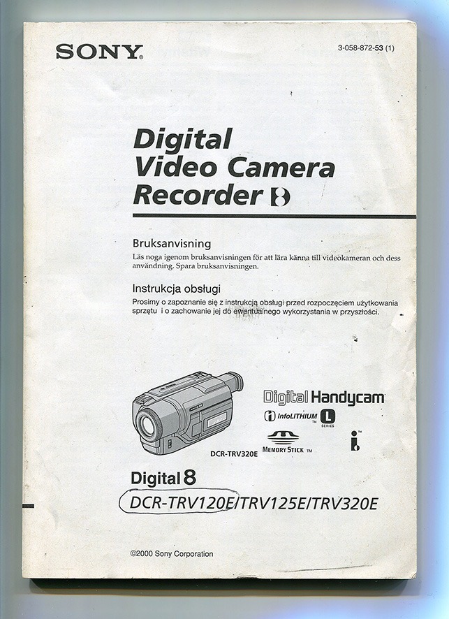Oferuję oryginalną do kamer Sony DCR-TRV120E i DCR-TRV125E oraz DCR-TRV320E. Instrukcja polsko/szwedzka. Duża rzadkość. Stan bardzo dobry jak na wiek -stan wizualny widoczny na zdjęciach (dołączone zdjęcia prezentują egzemplarz wystawiony na aukcji, w/w zdjęcia są chronione prawem autorskim ®)