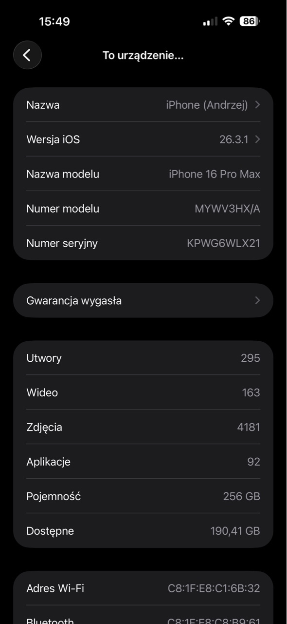 | Model telefonu | iPhone 16 Pro Max |