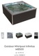 | Cechy dodatkowe | oświetlenie podwodne, generator ozonu, pokrywa, wodospad, uchwyty, pokrywa termiczna, oświetlenie zewnętrzne, system audio, system aromaterapii, system masażu powietrznego |