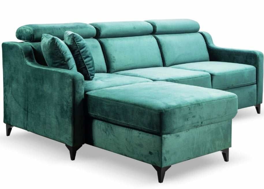 | Informacje dodatkowe | z regulowanymi zagłówkami, na niskich nóżkach, pojemnik na pościel, podłokietniki, z poduszkami na/jako oparcie |