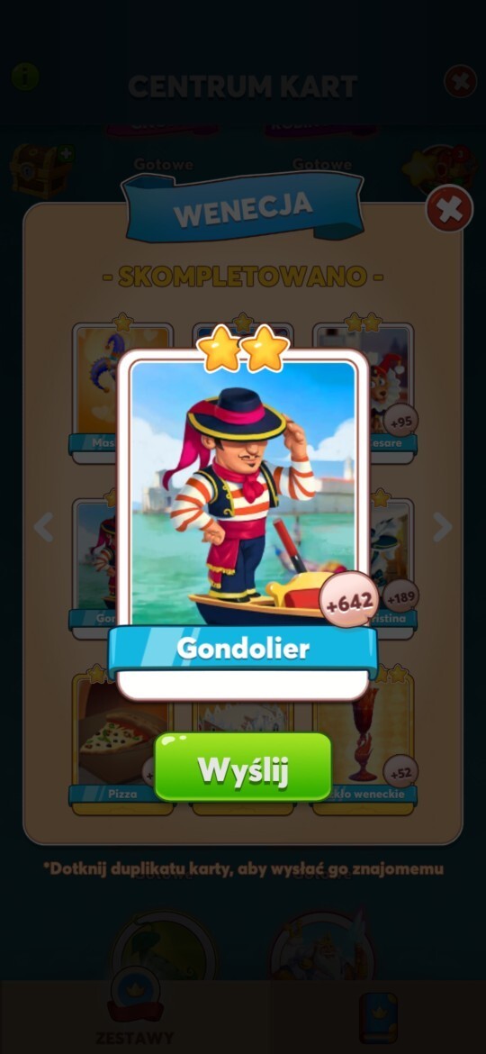 | Nazwa przedmiotu | Karta Coin Master Gondolier |