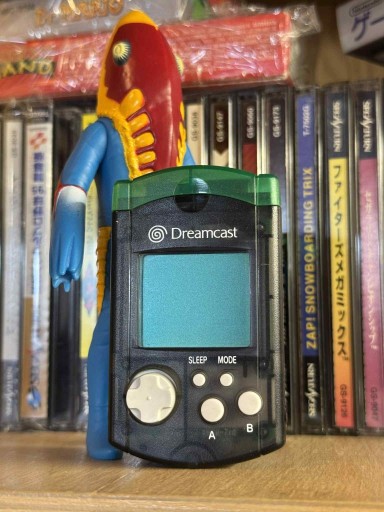 Karta pamięci SEGA Dreamcast Visual Memory Unit w kolorze translucent black.