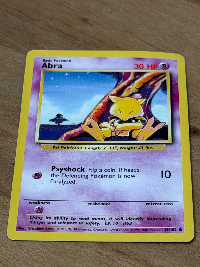 | Nazwa | Karta Pokemon - Abra 43/102 - Base Set - Rok 1999 - Stan bardzo dobry |