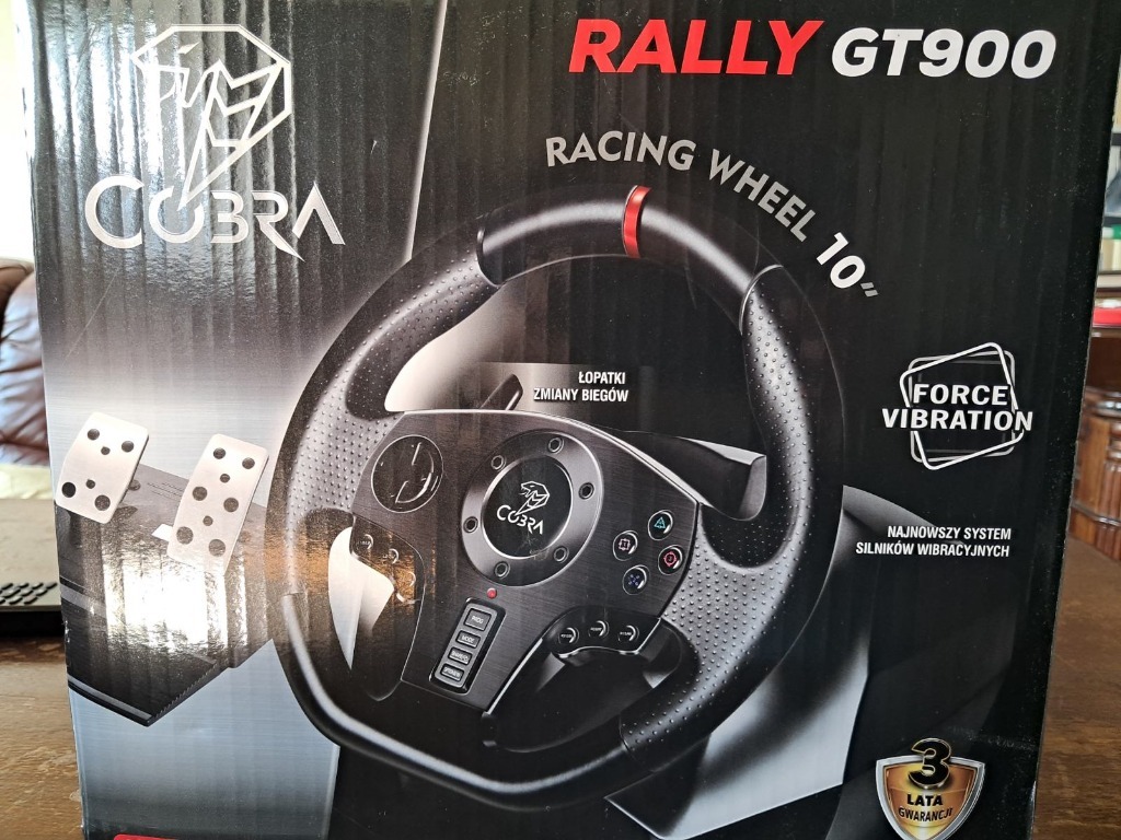 Kierownica COBRA GT 900 należy do zaawansowanych technicznie urządzeń przeznaczonych do zastosowania w grach samochodowych, wyścigowych i symulacyjnych. Urządzenie jako jedno z niewielu dostępnych na rynku jest kompatybilne z konsolami PS4/PS3/ XBOX ONE/ XBOX 360/ PC/ NINTENDO. Rally GT900 to idealne rozwiązanie dla fanów gier wyścigowych. Rally GT900 prezentuje bardzo dobrą jakość w stosunku do swojej atrakcyjnej ceny. Rally GT900 posiada promień skrętu 900 stopni z możliwością przełączenia na 270 stopni oraz wbudowane silniki wibracyjne. Została pokryta specjalnym antypoślizgowym materiałem w kolorze czarnym. Jest bardzo komfortowa i ergonomicznie zaprojektowana.
