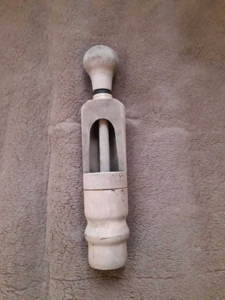 Znaleziona na strychu stara, drewniana korkownica, sądzę, że przedwojenna. Wymiary: długość 27 cm