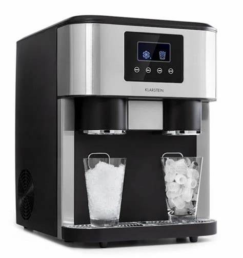 Kostkarka do lodu Eiszeit Crush o dużej wydajności produkcyjnej produkuje dziennie 15–18 kg kostek lodu. Dzięki temu nadaje się zarówno do stosowania w domu, jak i na imprezach lub przyjęciach w ogrodzie. Obsługa kostkarki do lodu jest przy tym całkiem prosta i komfortowa dzięki panelowi sterowania z przyciskami, znajdującemu się pod czytelnym wyświetlaczem LCD, przy czym kostki lodu można uzyskać w rozmiarze małym i dużym. Dzięki swoim trzem funkcjom Eiszeit Crush serwuje nie tylko kostki lodu, lecz oferuje – jak to już zdradza jej nazwa – oprócz wody lodowej także kruszony lód. Duży zbiornik na wodę o pojemności 1,8 l oraz zbiornik na kostki lodu o pojemności 600 g gwarantują przygotowanie każdej ilości lodowatych napojów. Dopływ wody uruchamia się ręcznie poprzez przyłączenie do kurka czerpalnego przy pomocy węża znajdującego się w zestawie. Przy pełnym zbiorniku na lód lub zbyt niskim poziomie wody kostkarka do lodu generuje alarm, dzięki czemu można szybko zareagować. Po zakończeniu pracy odporną obudowę z frontem ze szczotkowanej stali szlachetnej można łatwo wyczyścić, a dzięki ponadczasowemu wzornictwu urządzenie wkomponuje się bez problemu w każde otoczenie. Wymiary: ok. 34 x 45 x 45,5 cm (szer. x wys. x gł.) Waga: ok. 16,5 kg Kolor Czarny lub Niebieski wysyłany losowo T Opakowanie