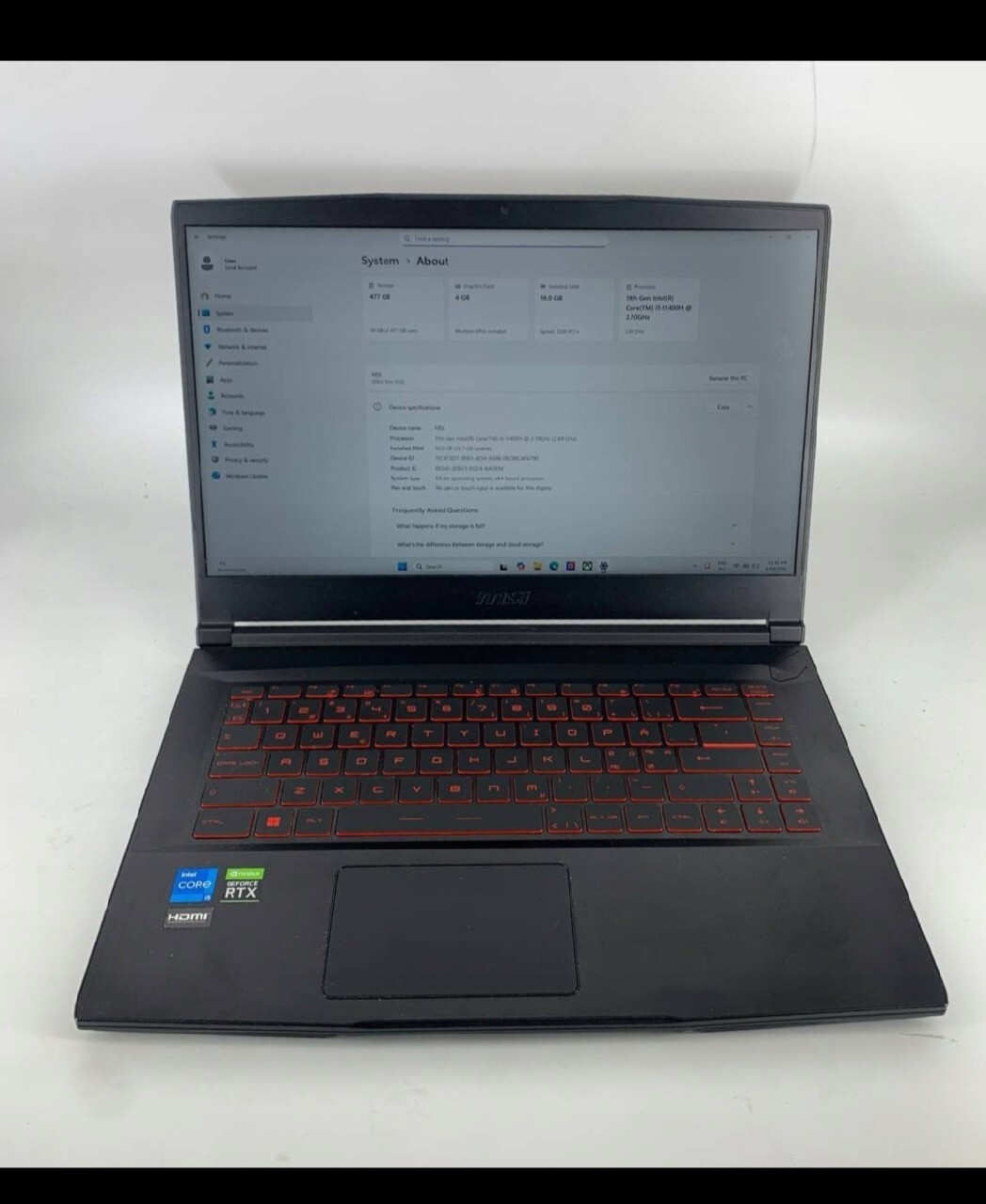 | Model | MSI Gaming Thin GF63 12VF-263FR |