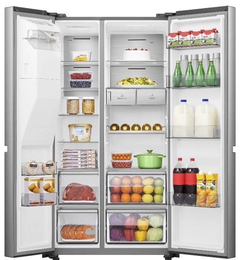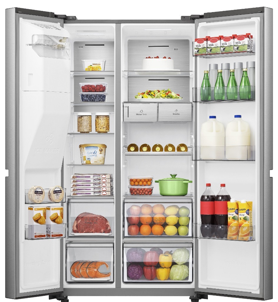 | Funkcje | dystrybutor wody, komora zerowa, kostkarka automatyczna, oświetlenie LED, płynna regulacja temperatury, superchłodzenie, szybkie chłodzenie, szybkie mrożenie, tryb wakacyjny, wymuszona cyrkulacja powietrza |