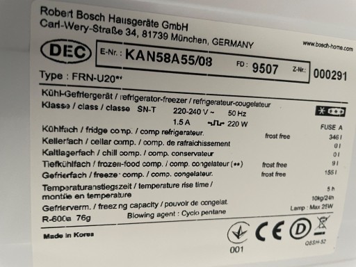 | Model | Serie | 6, Side by Side, Czarny KAN58A55/08 |