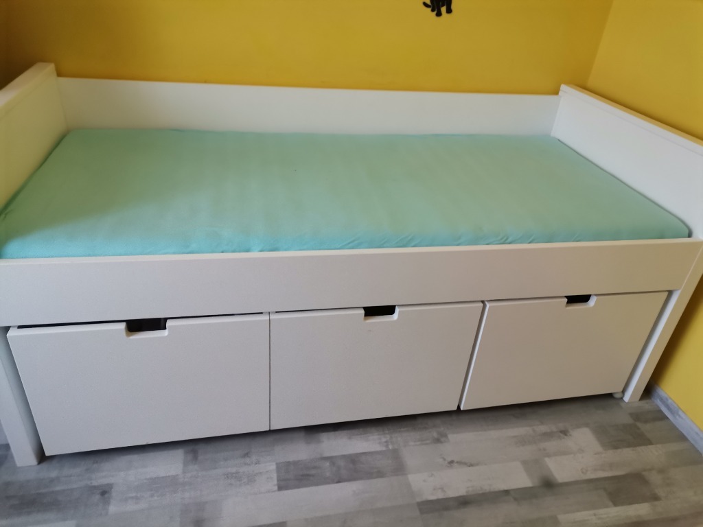 | Typ łóżka | materac w komplecie, z zagłówkiem, ze stelażem, pojemnik na pościel otwierany do góry |