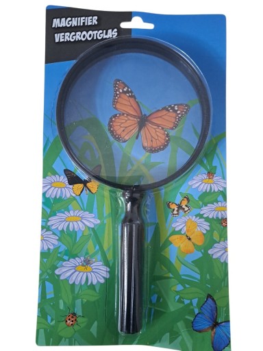 Praktyczna lupa ręczna z wygodnym uchwytem, idealna do dokładnego oglądania drobnych elementów. Doskonale sprawdzi się dla dzieci, dorosłych, seniorów oraz miłośników przyrody. Kolorowa grafika z motylami i owadami sprawia, że lupa jest również atrakcyjna wizualnie i świetna jako pomoc edukacyjna.