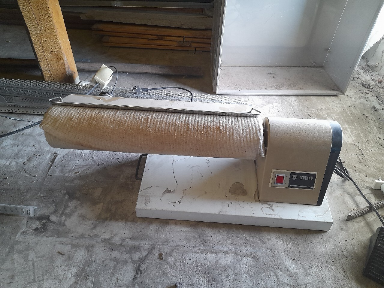 Magiel wygląda bardzo dobrze, lekko przykurzony. Testowałem, jest sprawny, grzeje, obraca się. W zestawie z pedałem, włącznikiem