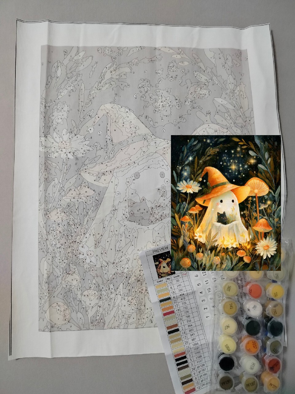 | Elementy zestawu | farby, haczyki do zawieszenia, pędzle, instrukcja, wzór na płótnie |
