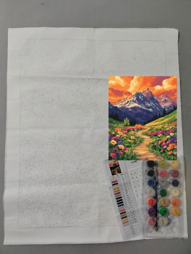 | Elementy zestawu | farby, haczyki do zawieszenia, pędzle, wzór na płótnie |