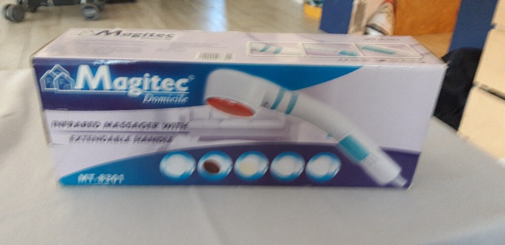 Masażer z kilkoma końcówkami oraz światłem infrated. Wydłużana rączk, idealna do madażu pleców. Sprawny. Niewiele używany (dostałam na prezent).