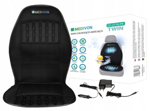 Mata Medivon posiada wbudowany wentylator oraz system regulacji przepływu powietrza - umożliwia to dostosowanie poziomu chłodzenia do własnych potrzeb. Pokryta jest wysokiej jakości siateczką dystansową - materiał pozwala na odpowiednią cyrkulację powietrza, dodatkowo nie pochłania wilgoci, co zapewnia komfort jej użytkowania. Mata nadaje się zarówno do użytku domowego, jak i w podróży - posiada pasy mocujące, które pozwalają w prosty sposób przymocować ją do fotela samochodowego. Urządzenie sterowane jest łatwym w obsłudze pilotem, który umożliwia zmianę poszczególnych funkcji. Oprócz chłodzenia, mata Medievon posiada również funkcję grzania. Świetnie sprawdzi się więc nie tylko latem, ale także w chłodne, jesienno - zimowe wieczory. Działa relaksująco i rozluźniająco na mięśnie, przyspiesza również ich regenerację.